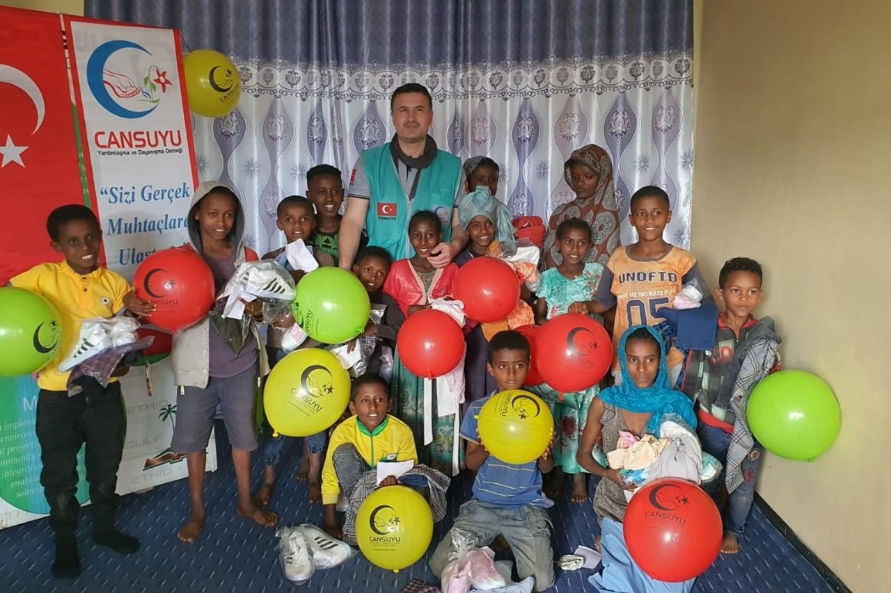 Bölgedeki yardımları gıda dağıtımları ile sınırlı kalmayan Cansuyu Yardımlaşma ve Dayanışma Derneği, ; Wollo Bölgesi’ne bağlı Kombolcha ve Bati şehirlerinde iç savaş mağduru onlarca yetimin yüzünü güldürdü. Türkiye’deki bağışçıların emanetleri olan ayakkabı ve kıyafetlerden oluşan hediyelerle yetim çocuklar giydirildi.