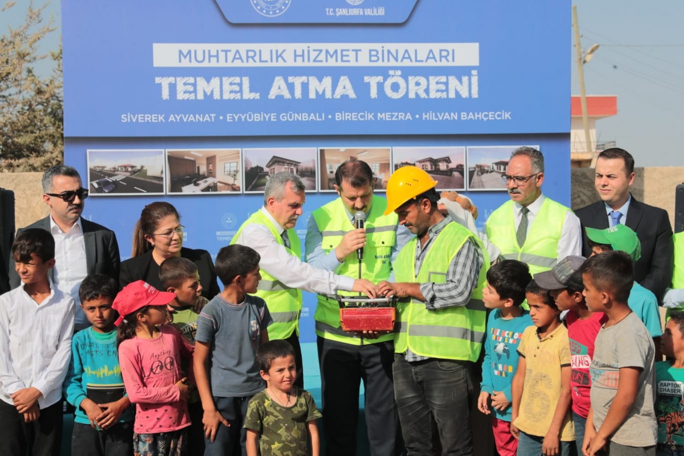 19 Ekim Muhtarlar Günü nedeniyle, eş zamanlı gerçekleştirilen "Muhtarlar Evi Açılışı ve 100 Muhtar Hizmet Binası Temel Atma Töreni" kapsamında Şanlıurfa'da da muhtarlık binalarının temeli atıldı.