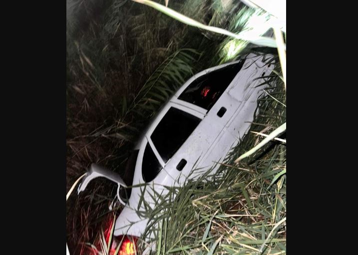 Kanalın içindeki kamışların üzerinde durabilen araçtaki kadın sürücü yaralandı.