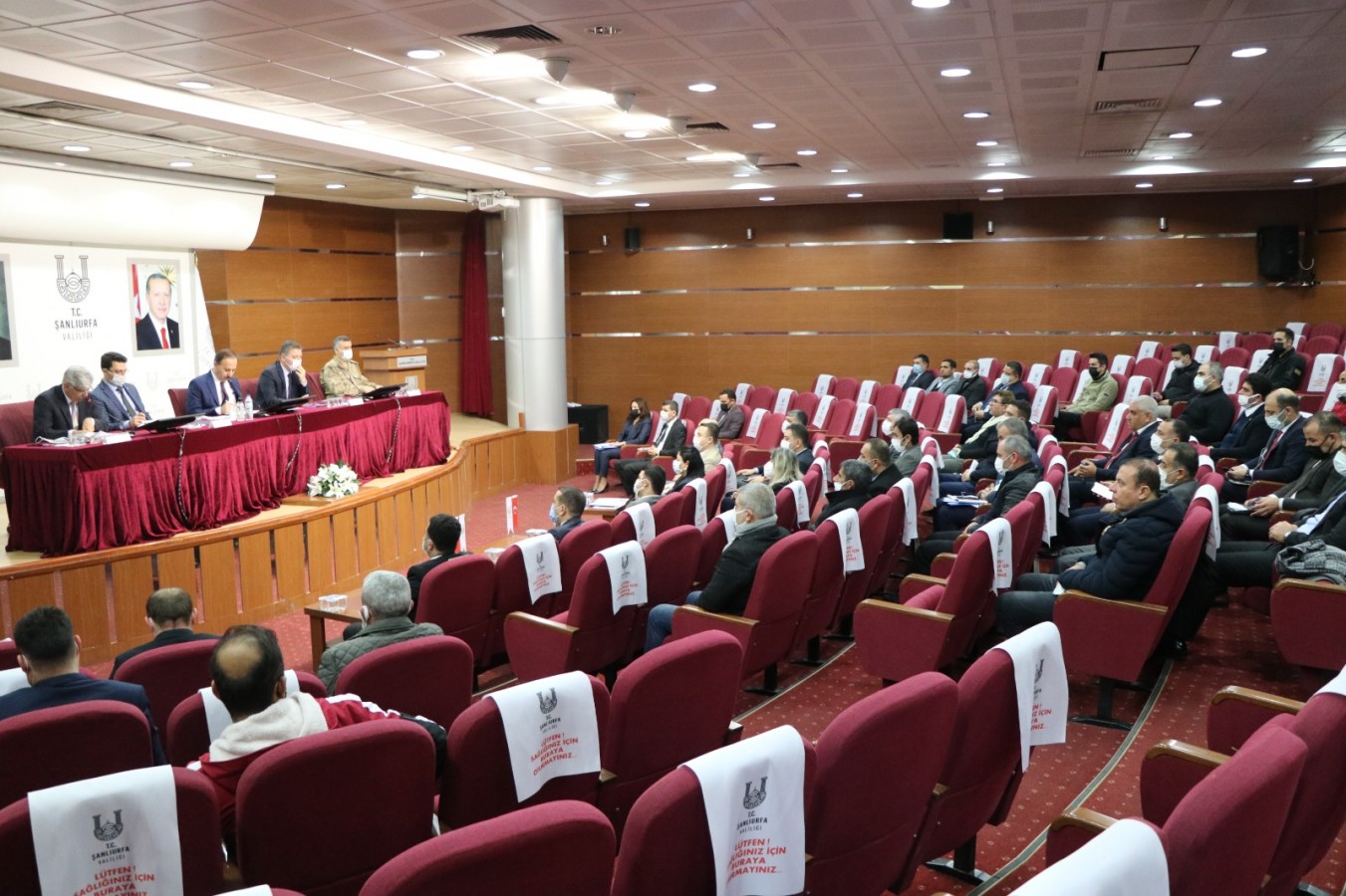 Şanlıurfa Valisi Abdullah Erin başkanlığında, Vali Yardımcısı Yasin Akgül, ; İl Jandarma Komutanı Tuğgeneral Metin Düz, İl Emniyet Müdürü Selçuk Doğuş, İl Milli Eğitim Müdürü Fevzi Kurt, kaymakamlar, ilçe milli eğitim müdürleri, okul idarecileri ve okul aile birliği temsilcilerinin katıldığı toplantıda, ; 2021-2022 eğitim öğretim yılı ilk yarısında uygulanan ve önümüzdeki dönem için planlanan tedbirler değerlendirildi.