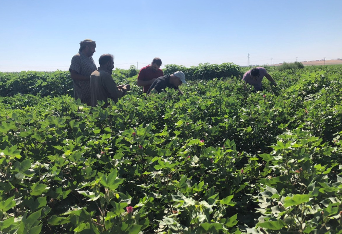 Akçakale İlçe Tarım ve Orman Müdürlüğü’nün Bitkisel Üretim ve Bitki Sağlığı Şube Müdürlüğü uzmanları, Akçakale’nin Dorumali kırsal Mahallesi’nde pamuk tarlalarını denetledi.