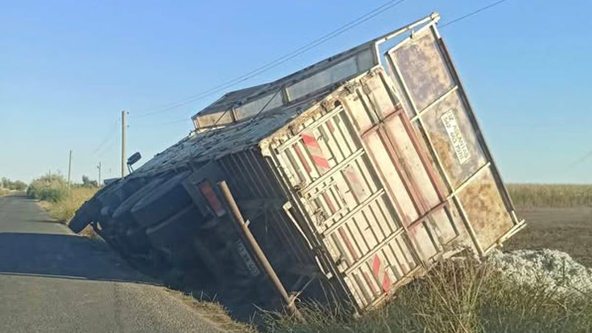 İddiaya göre, sürücüsü ve plakası henüz belirlenemeyen kamyon, sürücüsünün direksiyon hakimiyetini kaybetmesi sonucu kontrolden çıkarak devrildi. Kazada kamyon sürücüsü yaralandı.